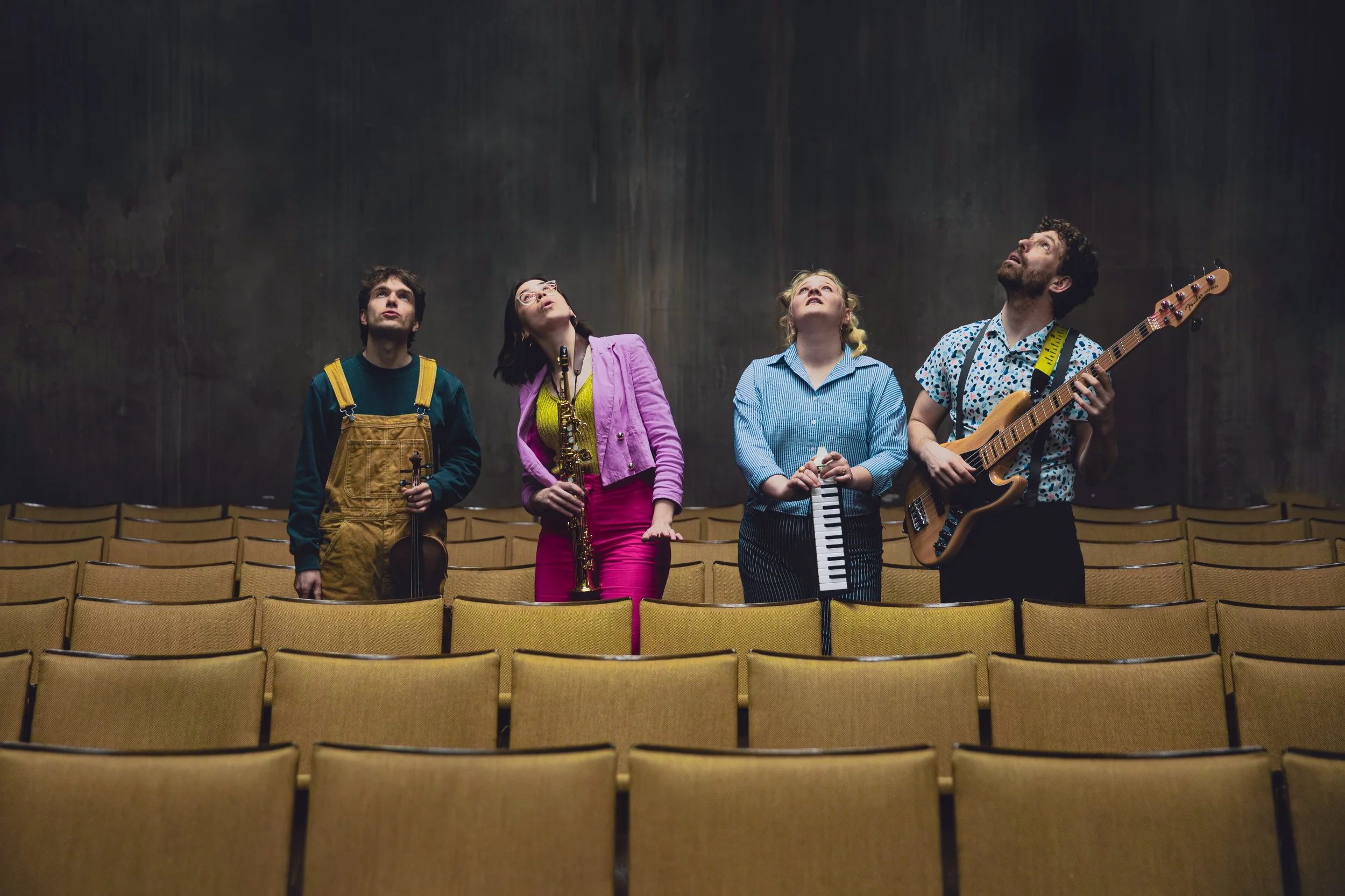 Paul, Vicy, Milly & Gidi sind das Gedankenreiseorchester. Wir machen Mitmachkonzerte für Kinder im Volksschulalter und schreiben dafür moderne Stücke. Die Mitmachteile bestehen aus Bodypercussion, dem Einstudieren von Refrains und Bewegungsabläufen. Die Kernteile unserer Stücke bilden angeleitete freie Improvisationen, bei denen die Kinder Teil des Gedankenreiseorchesters werden.